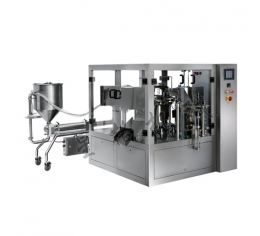 設備構成:轉盤式醬菜包裝一體機、自動進袋真空機、液體灌裝機、斗式提升機